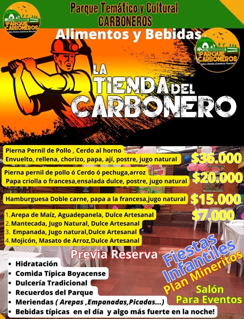 El PARQUE TEMÁTICO Y CULTURAL CARBONEROS ofrece servicios turísticos de recreación, esparcimiento y aprendizaje entorno a la cultura de la minería artesanal de carbón y las tradiciones culturales boyacenses ; a través de escenarios artísticos, culturales, talleres, exposiciones y actividades de diversión; con un enfoque 100% vivencial.